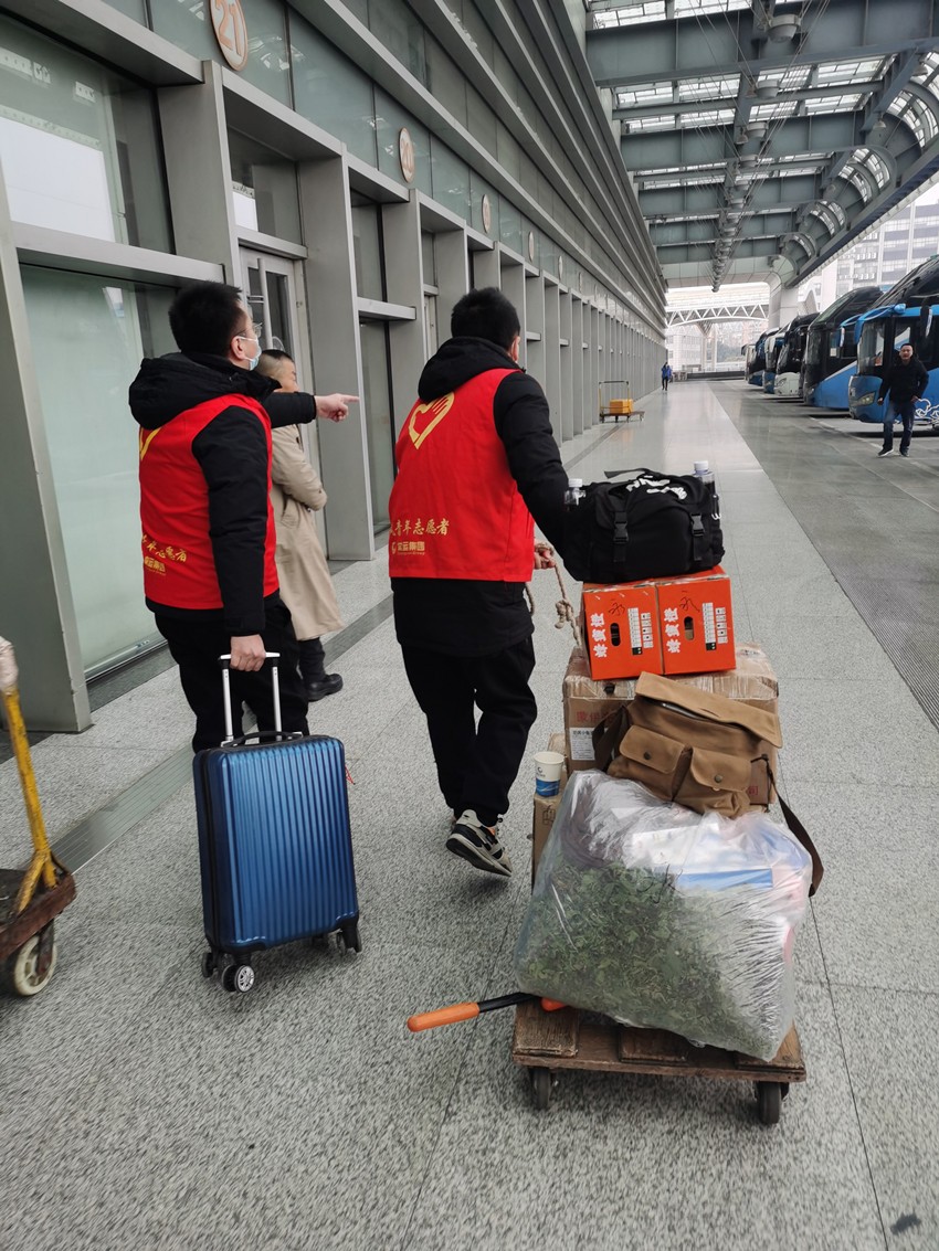 “怎樣讓我們的志愿服務(wù)更走心,更加滿(mǎn)足旅客進(jìn)站乘車(chē)的真正剛需”,常運(yùn)集團(tuán)在組織今年的“愛(ài)在旅途 順風(fēng)志愿行”春運(yùn)志愿服務(wù)活動(dòng)時(shí)首先專(zhuān)注這里。務(wù)工返鄉(xiāng)的旅客行李多,中老年旅客需要更多的人工指引幫助,攜帶“小候鳥(niǎo)”回家的既要拎著行李還要拖著孩子……各種各樣的情況,各種各樣的需求。因此,常州汽車(chē)站順風(fēng)志愿服務(wù)隊(duì)將回答問(wèn)詢(xún)、站內(nèi)引導(dǎo)、幫提行李這些乘車(chē)剛需作為服務(wù)重點(diǎn),2月7-8日,志愿者們分布在實(shí)名制進(jìn)站口、安檢儀旁及候車(chē)室、一樓廣場(chǎng),一幕幕溫暖的故事持續(xù)上演。一對(duì)回新沂的老夫妻,拖著平板車(chē),上面放著紙箱拎袋七八個(gè),外加兩輛不新的折疊自行車(chē),拖車(chē)寬到進(jìn)不了閘機(jī);一位阿姨拖著大號(hào)行李箱,手提拎包拎袋四五個(gè),獨(dú)自上不了電梯;一個(gè)大叔是孩子在“常州汽車(chē)站”微信公眾號(hào)上幫買(mǎi)了票,以為要取了票才能乘車(chē)又不會(huì)操作;還有一雙干燥皴裂的手拿著一張車(chē)票,不知道在哪里檢票而不知所措,這些都在志愿者和車(chē)站工作人員的幫助下,順利地踏上了歸途,他們一連十幾個(gè)的“謝謝”和不?;仨狞c(diǎn)頭笑容,讓志愿者們也靦腆起來(lái)。
