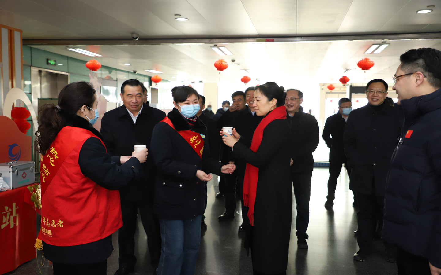 2月8日上午,常州市市長(zhǎng)盛蕾一行至常州汽車(chē)客運(yùn)站走訪(fǎng)慰問(wèn)并督查保供應(yīng)保安全保暢通工作,市相關(guān)領(lǐng)導(dǎo),市交通運(yùn)輸局黨委書(shū)記、局長(zhǎng)薛曄,副局長(zhǎng)周旭棟;集團(tuán)公司董事長(zhǎng)謝星,黨委書(shū)記、總經(jīng)理朱平春,副總經(jīng)理劉旭霞、印志峰陪同督查。