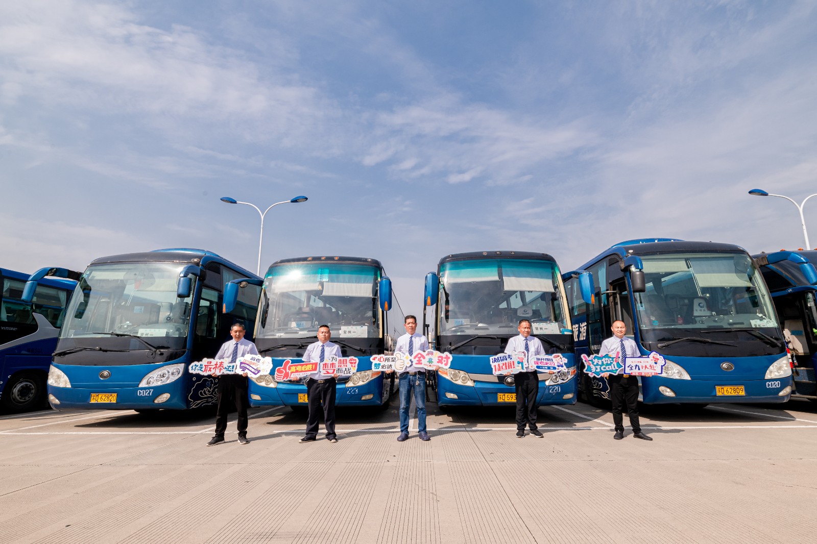 優(yōu)質(zhì)高考,服務(wù)更人性。所有車輛按照標(biāo)準(zhǔn)做好衛(wèi)生保潔工作,全程循環(huán)通風(fēng),提供一個(gè)綠色溫馨的乘車環(huán)境。所有駕駛員標(biāo)準(zhǔn)著裝,笑臉迎客,引導(dǎo)學(xué)生上車,在送考途中為考生播放相聲、小品等娛樂性的節(jié)目,為考生減壓。公司還精心制作了“高考必勝、為你打call”等標(biāo)牌,為考生助力加油。駕駛員將嚴(yán)格按照規(guī)定時(shí)間發(fā)車,全程勻速行駛,確保安全準(zhǔn)點(diǎn)將考生送達(dá)指定考場(chǎng)??忌萝嚭?,駕駛員將及時(shí)對(duì)車內(nèi)進(jìn)行細(xì)致的檢查,防止出現(xiàn)“馬大哈”學(xué)生丟失文具的情況出現(xiàn)。公司還安排安管人員帶隊(duì),做好現(xiàn)場(chǎng)指揮管理,配備應(yīng)急車輛及機(jī)動(dòng)駕駛員,做好應(yīng)急保障。